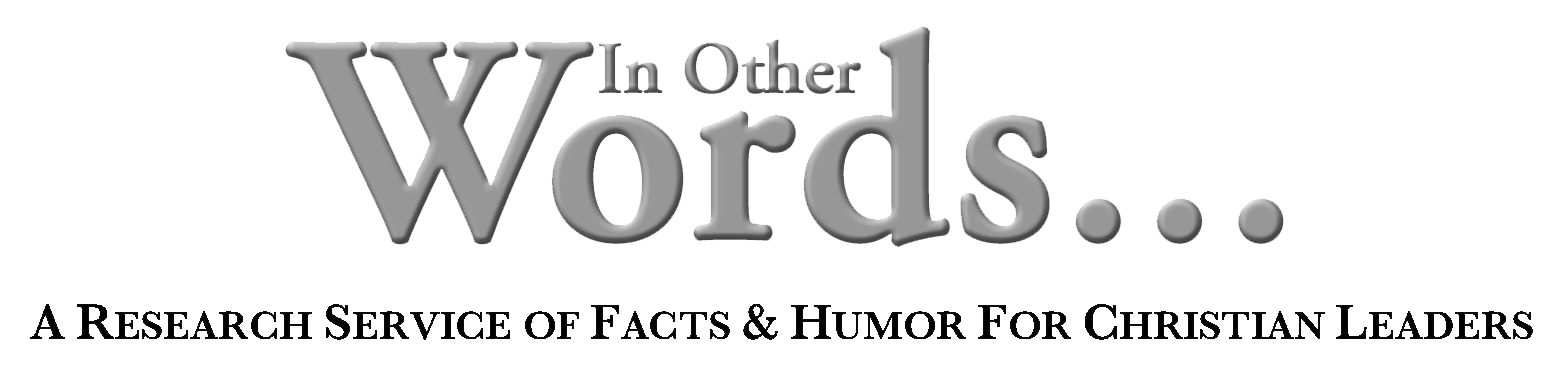 IN OTHER WORDS… began in 1991 and is produced by Dr. Raymond McHenry, Senior Pastor of the Westgate Memorial Baptist Church in Beaumont, Texas. Subscribers receive access to over 7,000 illustrations on our website PLUS one emailed issue per month filled with intriguing facts, quotes, humor, and spiritual illustrations from a wide variety of sources. All content is copyrighted. Visit www.iows.net to start a new subscription or send inquiries to: